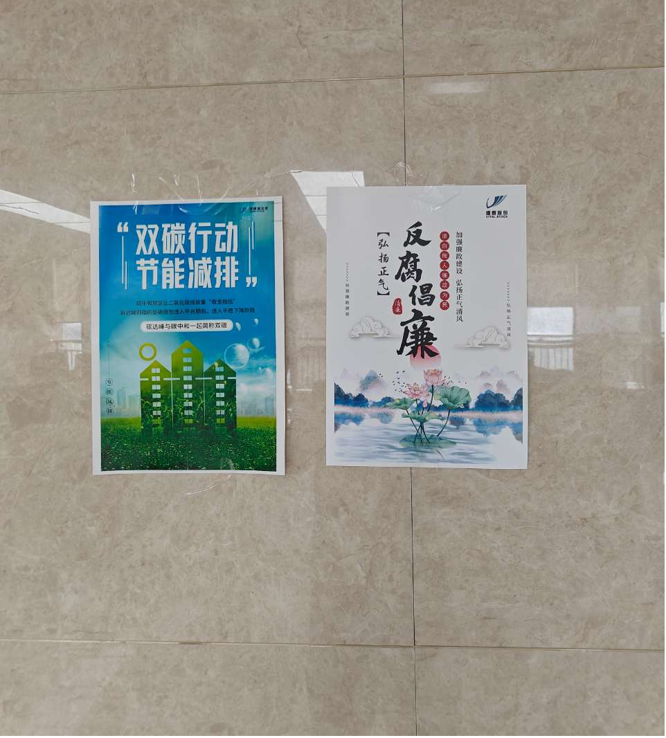 三是张贴廉政海报,打造倡廉文化墙。设计院办公区域贴上了一张张廉政主题海报展板,设计院内形成了新颖美观的“倡廉文化墙”。图文并茂的将有关规定、禁令与廉洁文化以富有哲理和视觉冲击力的现代海报形式表达出来,简洁明了,易懂易记,有效增强了员工自身的廉洁从业意识。