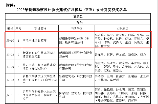 9月26日,新疆勘察设计协会公布建筑信息模型(BIM)设计竞赛获奖结果名单,维泰设计研究院两个项目经专家评审组初评、信息化建设工作委员会综评、新疆勘察设计网公示、协会审定荣获奖项,其中两港产业园1#莫环建筑荣获一等奖、灵香小镇一期沿街商铺项目荣获三等奖。