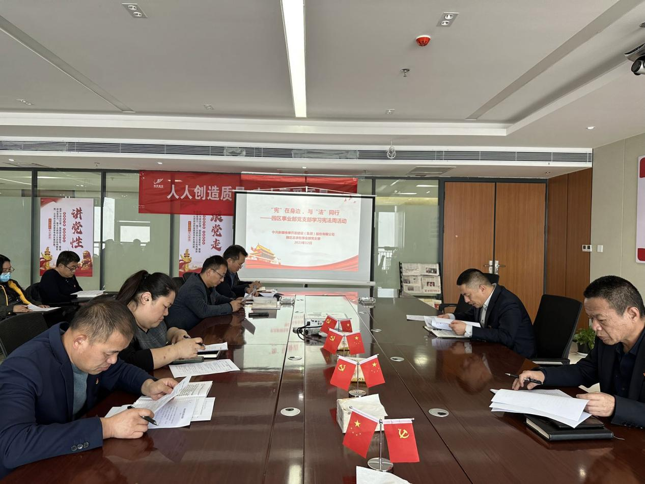 为进一步深入宣传习近平法治思想,弘扬宪法精神,在2023年全国“宪法宣传周”到来之际,园区事业部党支部组织开展了““宪”在身边 、与“法”同行”专题学习活动。