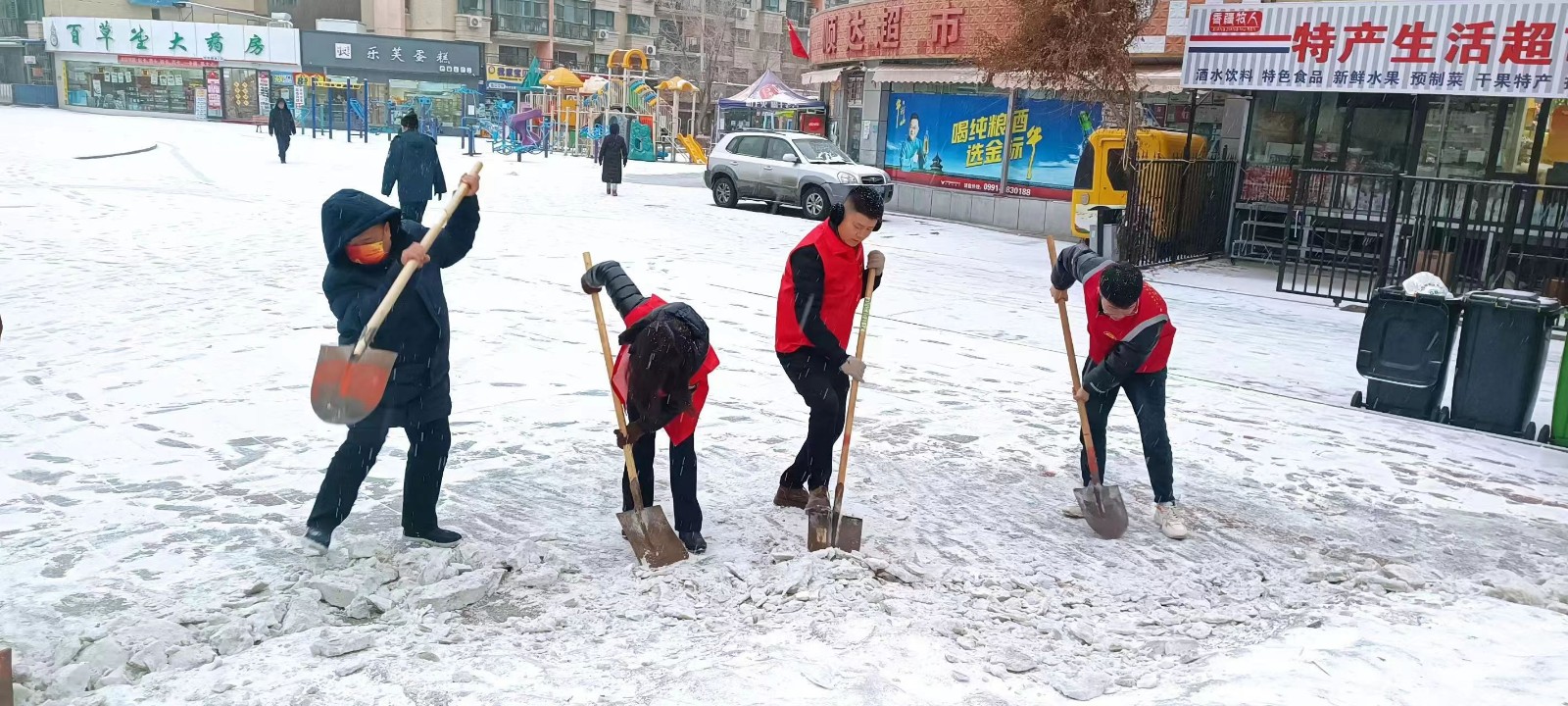 经过两个半小时的努力,积雪被清除干净。此次扫雪铲冰工作,不仅有效解决小区出入口道路积雪带来的安全隐患,同时发挥了党员服务效能,实现居民有事“快响应”,服务群众“零距离”。