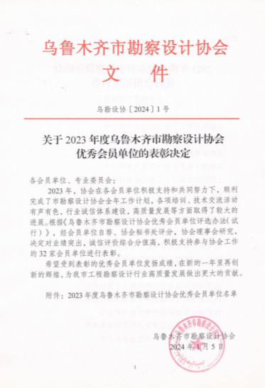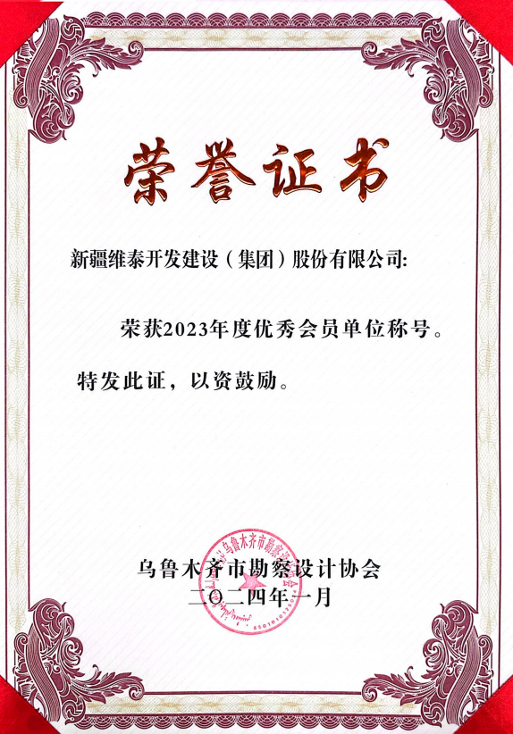 喜报!维泰设计研究院荣获2023年度乌鲁木齐市勘察设计协会优秀会员单位荣誉称号