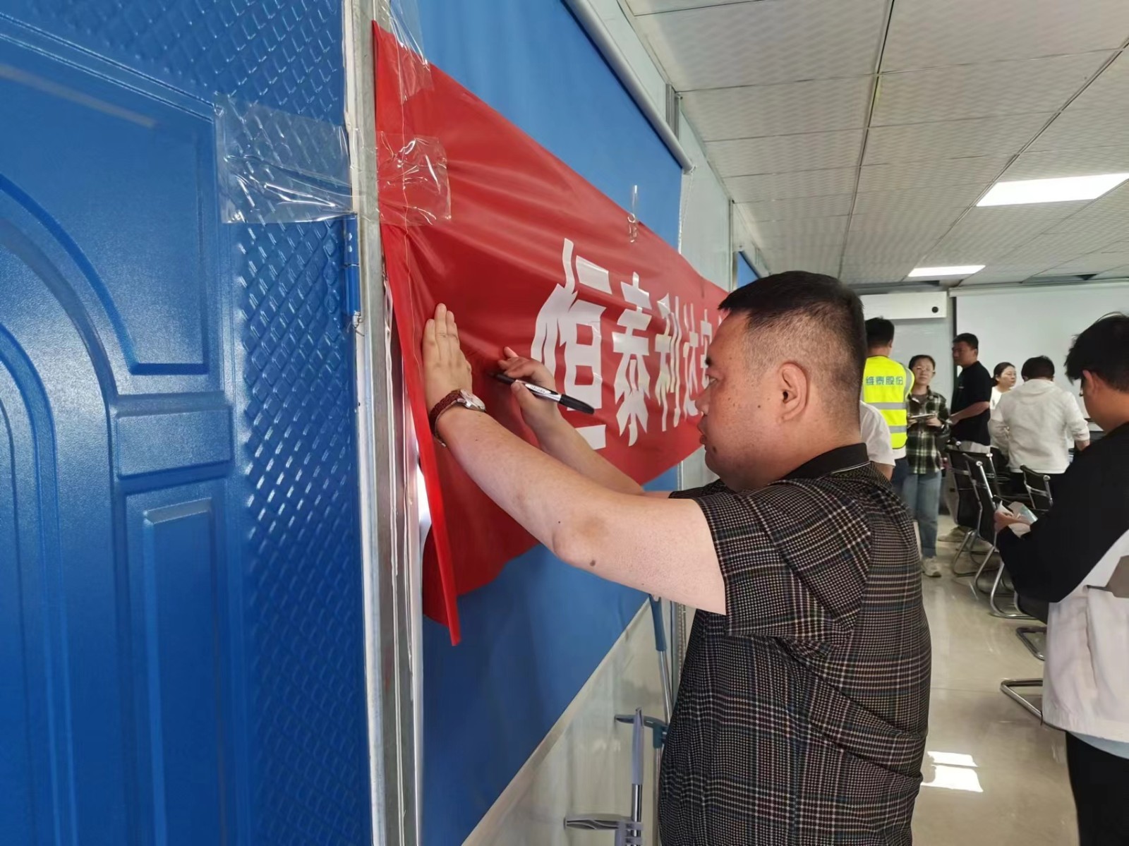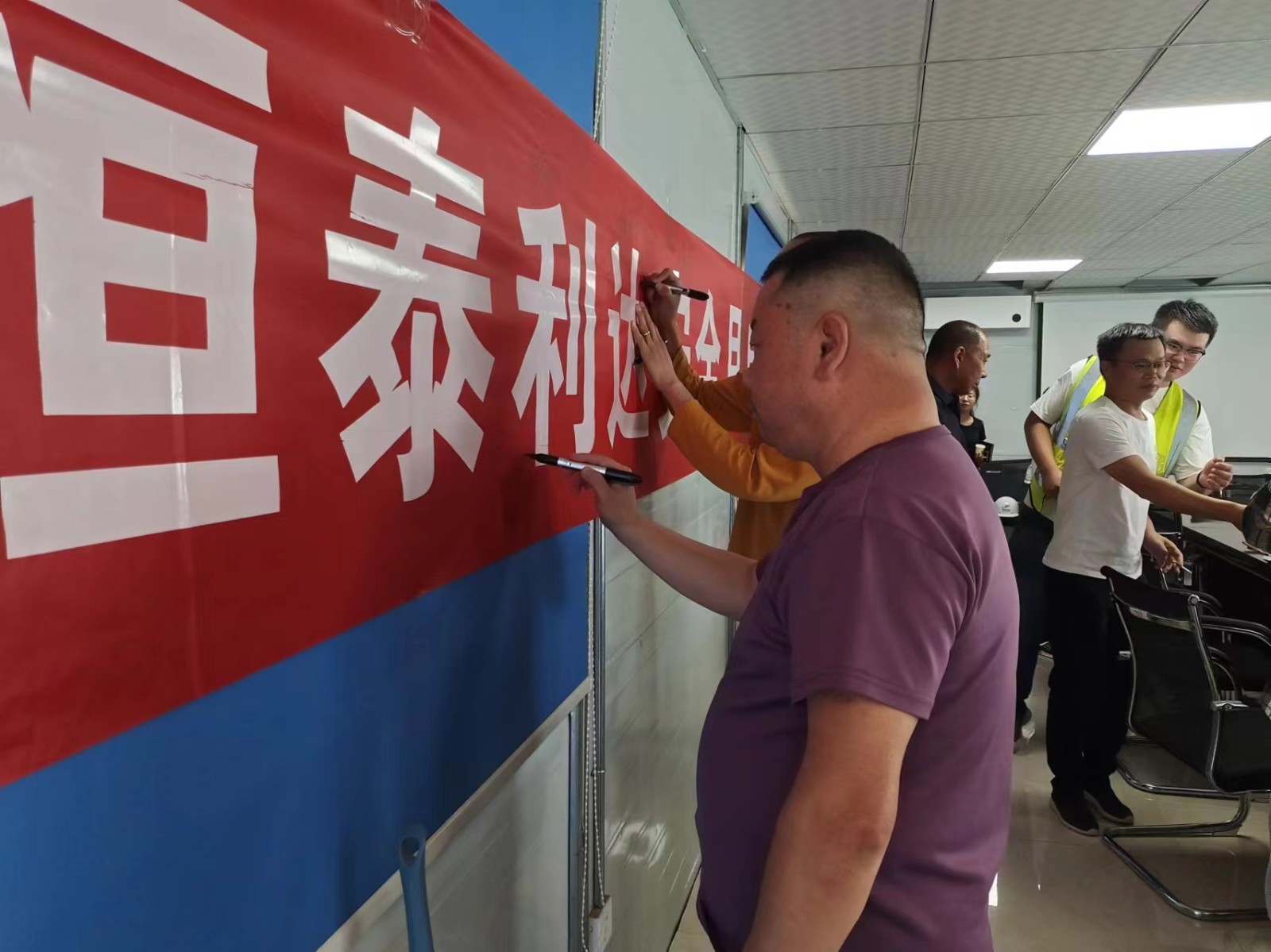 活动最后环节是在恒泰利达建设工程有限公司董事长蔡洪迪带头在“安全生产月”活动横幅签名,所有参会人员积极参与,标志着此次活动的圆满结束。