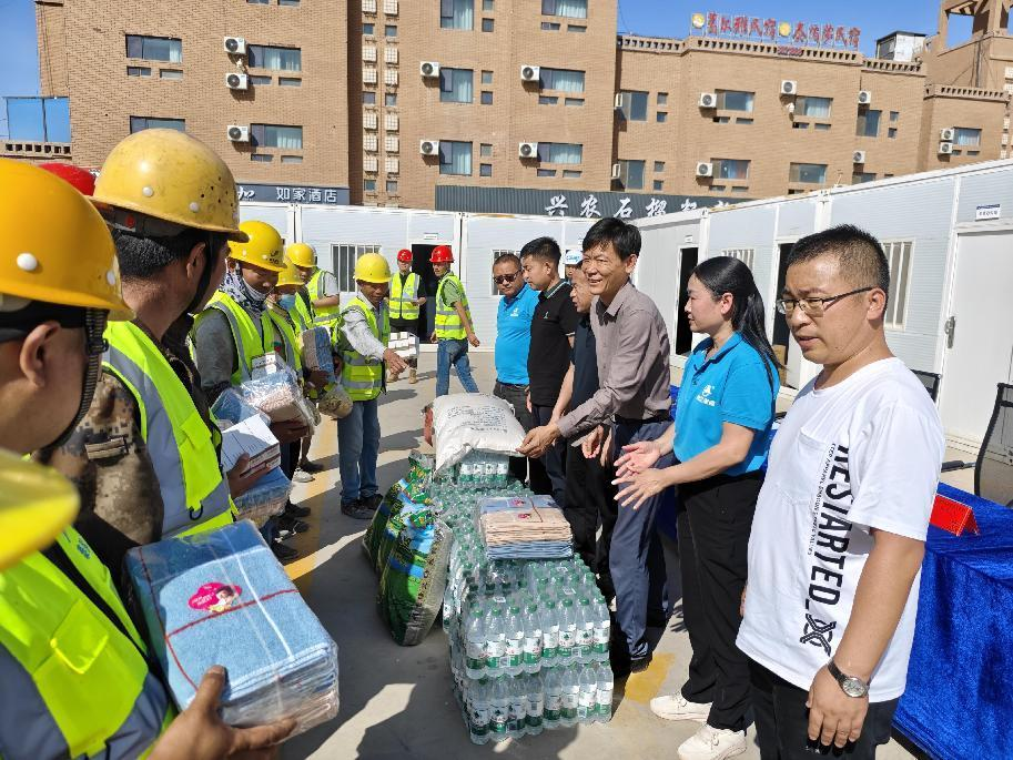 在古尔邦节到来之际,园区事业部副总经理周宏兵同志及部分事业部部室负责人前往喀什项目部走访慰问坚守一线的干部职工,为一线干部职工送来西瓜、荔枝等慰问品,并前往施工现场查看安全生产、工程质量、进度等情况,并对安全生产、工程建设提出工作要求。